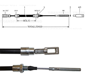 Bromsvajer utförande ögla-gänga (M8) | Längd hölje 900 mm, totallängd 1175 mm | Exkl. gaffel/säkring