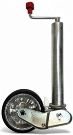 Vevbart stödhjul 200x50, massivgummihjul på plåtfälg med glidlager | Rördimension 60 mm | Max. belastning 500 kg (statiskt) | Exkl. klämfäste | Fällbar gaffel (helautomatisk)